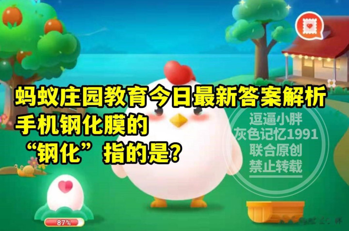 蚂蚁庄园教师:手机钢化膜的“钢化”指的是?A、金属因素 B、加工工艺;古语“早卧晚起,必待日光”体现了哪一项冬季养生原则?A、少寝息多出门 B、稳健当然法例;这些都是蚂蚁庄园教师的题目。
