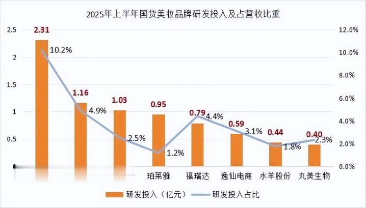 其研发投入与营销能力严重不匹配,成为制约品牌长期发展与爆款复制的核心瓶颈。2025年上半年,公司研发费用率仅为2.5%,虽较上年同期提升0.3个百分点,但与国货同行相比,这一比例也处于下游。