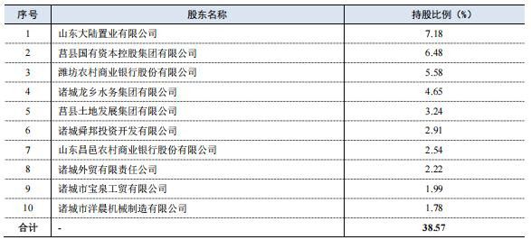 根据新世纪评级报告,诸城农商行股权结构分散且以民营企业为主,截至2025年3月末,前十大股东合计持股比例为38.57%,并无实际控制人。