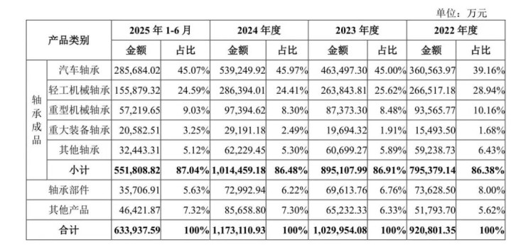 人本股份的轴承成品收入则主要来自汽车轴承及轻工机械轴承,milan前者各期收入占比主营收入的39.16%、45.00%、45.97%及45.07%,后者各期收入占比主营收入的28.94%、25.62%、24.41%及24.59%。
