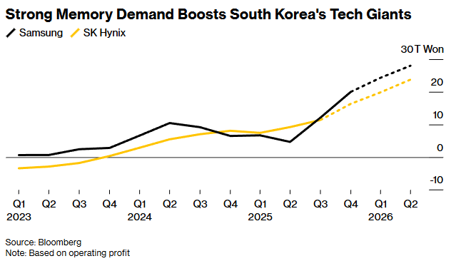 在存储芯片行业已迎来“超级周期”之际,韩国两大存储芯片巨头——SK海力士和三星电子——即将公布的业绩有望展现出带动韩国股市和更广泛半导体行业上涨的强劲动能。