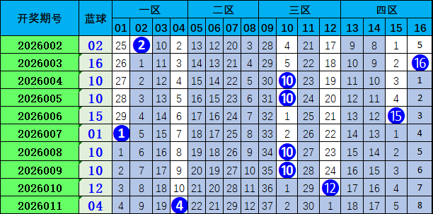 红球三位号:上期开出号码04,出现在第一区,与上一期对比下降6个点位,本期预计该号位上升,参考号码 10。