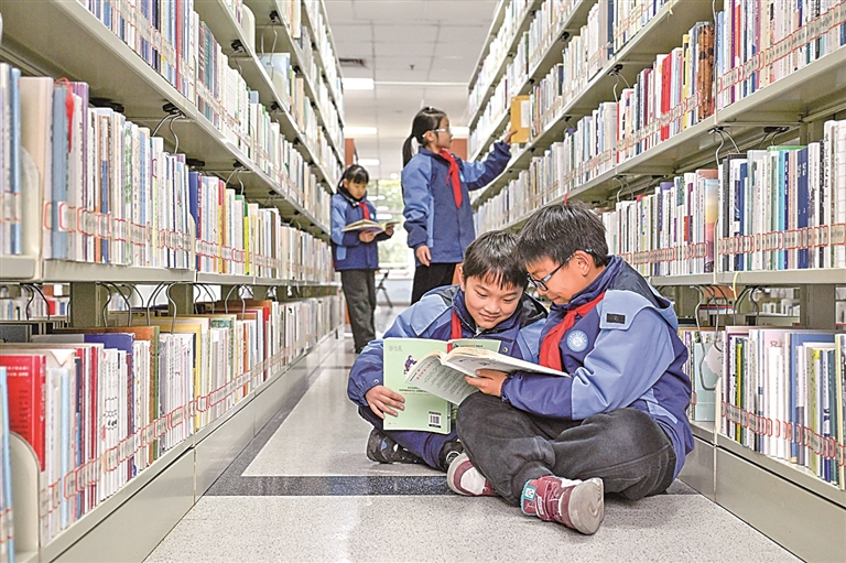 安徽合肥市图书馆内,小学生在阅读书籍。赵明摄/光明图片