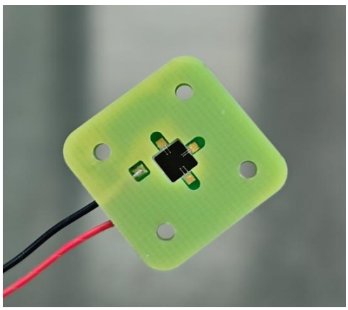 图3.采用钛/铂/金电极结构并采用航空级FR4封装的金刚石探测器实物照片