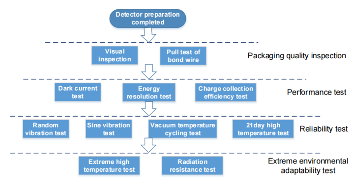 团队制定了完整的空间资格测试方案,包括结构检查、键合拉拔、I-V特性、α粒子谱响应,以及振动、真空热循环(-50℃~+55℃)、高温老化(65℃)、极端γ辐照(Co-60,总剂量10,000krad)和150℃高温测试。结果显示: