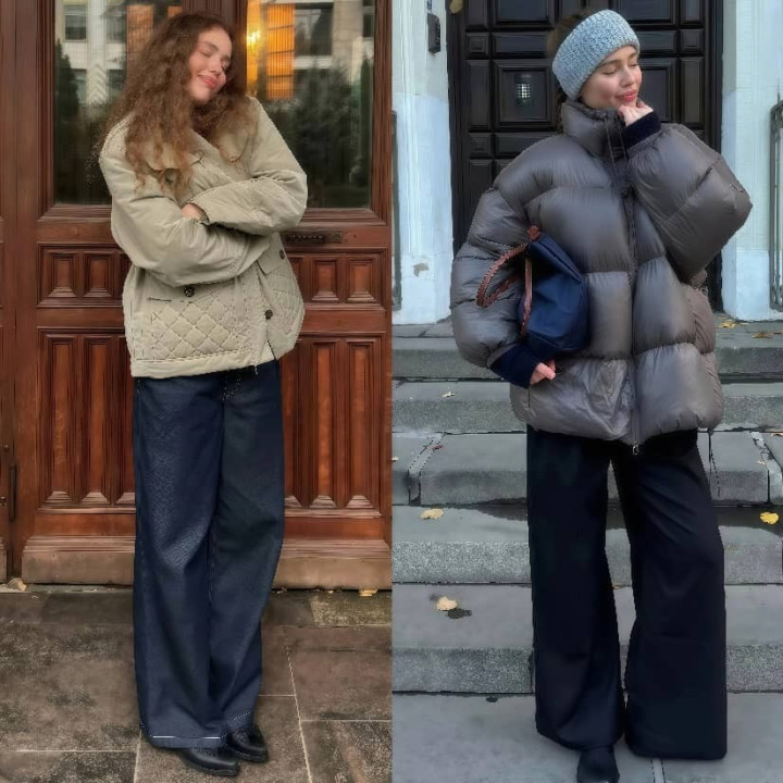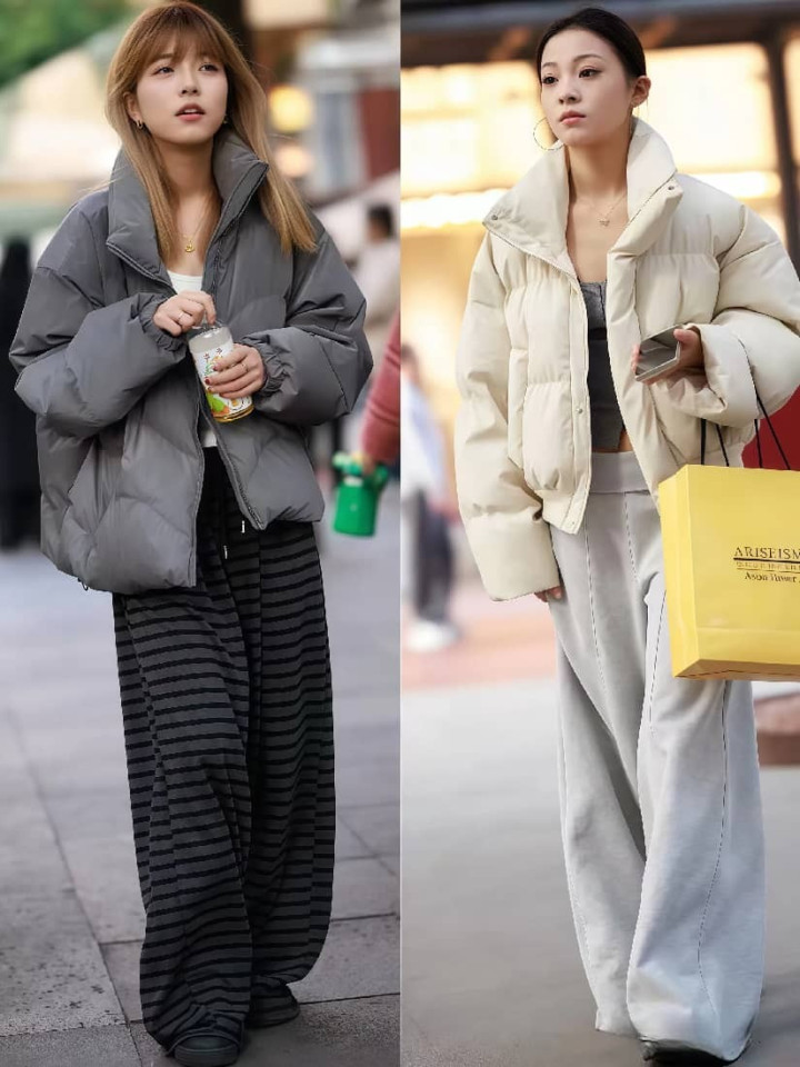 短款羽绒服想要穿得好看,选对鞋子非常重要,尤其是羽绒服和阔腿裤的组合,尽量不要穿太笨重的老爹鞋、厚底鞋,换成轻便一点的尖头低跟鞋、乐福鞋、德训鞋,连步伐都会更加轻快。