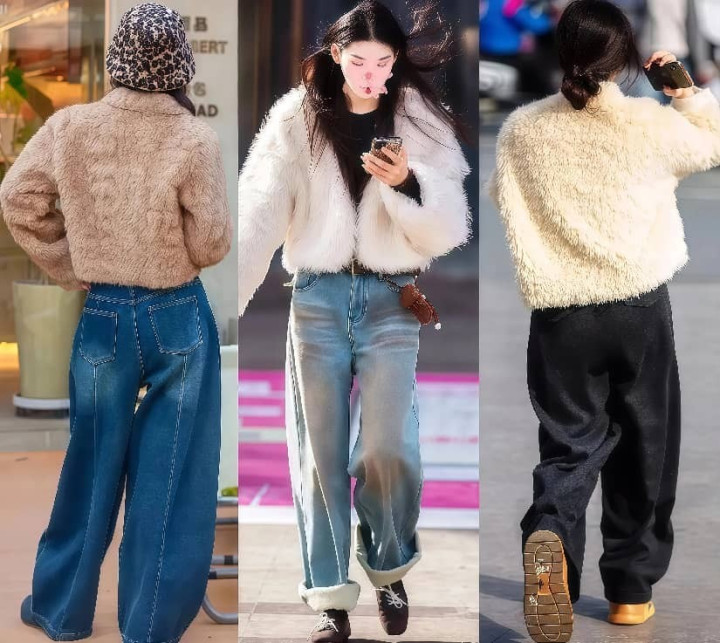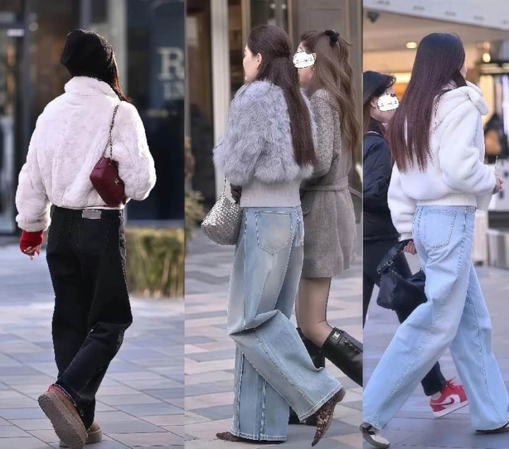 穿短皮草,千万不要轻易搭配紧身短裙,否则很容易显得俗气没档次,会穿的姐妹,都会牢记“上短下长”的法则,用高腰线设计的长裤、长裙,凸显腰线,显瘦又显高。