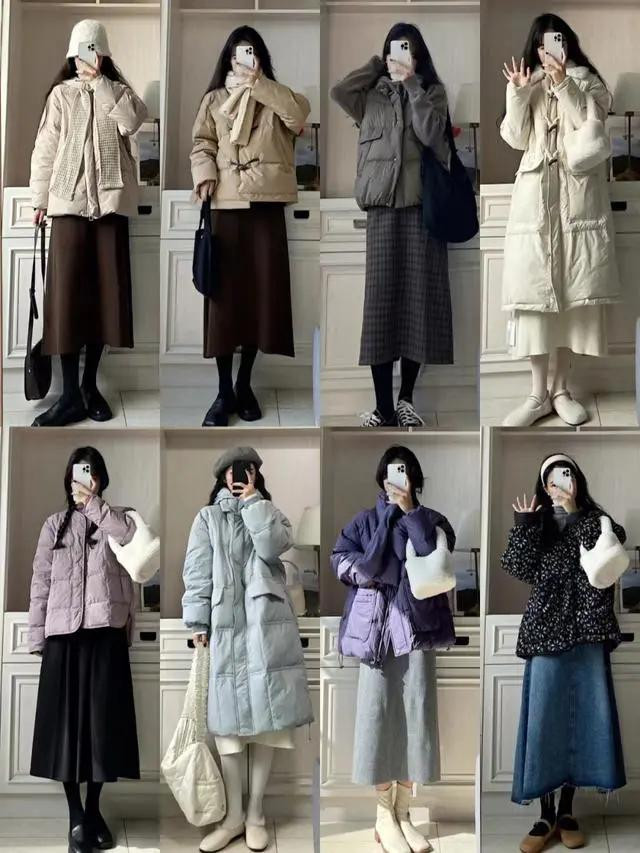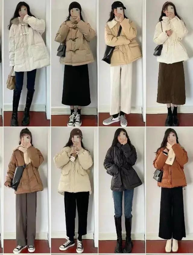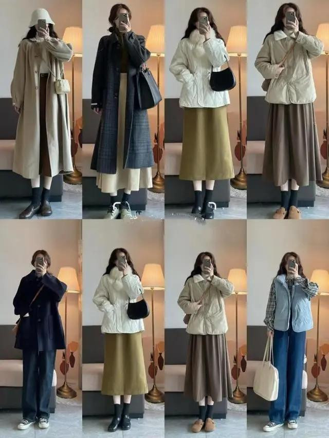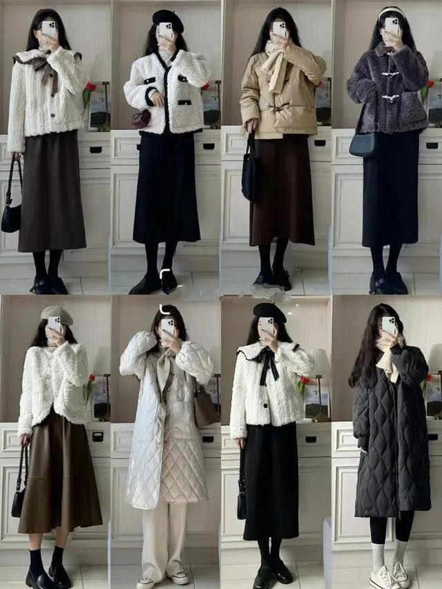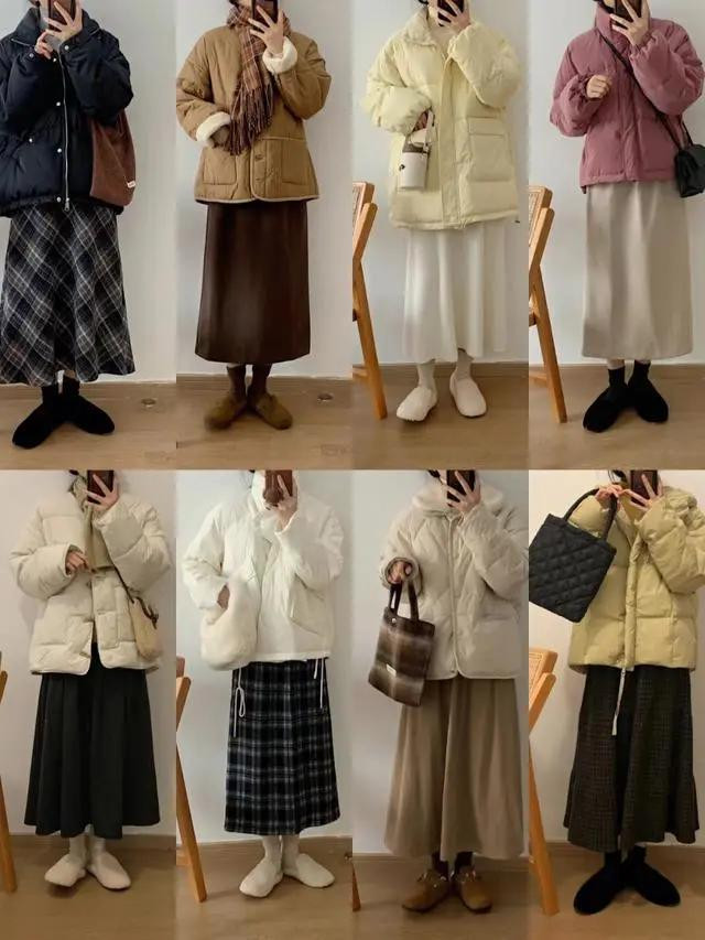 最稳妥的选择是修身适中款:羽绒服选合身微宽松的(不垮肩、不裹身),半裙选腰腹合身、下摆有轻微弧度的(A字、直筒都可),上身后利落又省心,不用费心调整,出门速度直接翻倍。