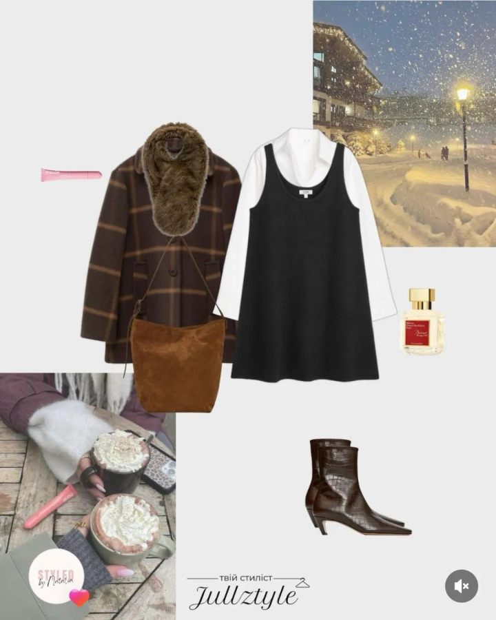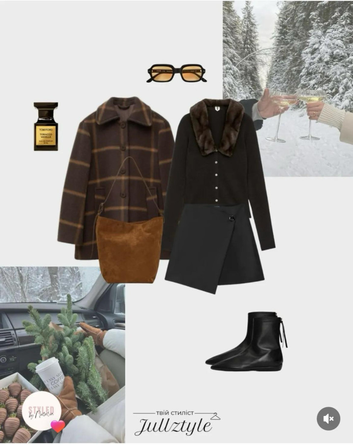 而小毛领毛衫配短裙,已经有了带着法式的洋气感,再穿起大格纹夹克,窗外大雪纷飞,我们却能安享美丽。