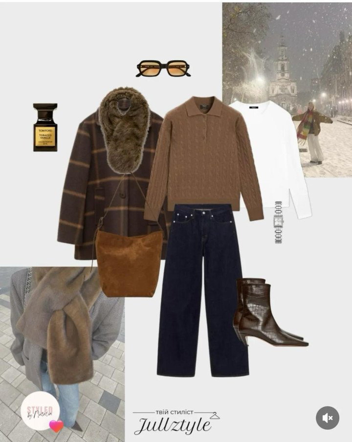 格纹加绒毛呢大衣还有毛领镶边,能一下让人穿出雪夜的氛围,麻花纹理的的衬衫款毛衣,再拎裘皮绒腋下包,冬日贵妇风真的很美。