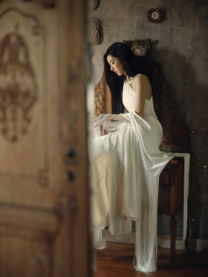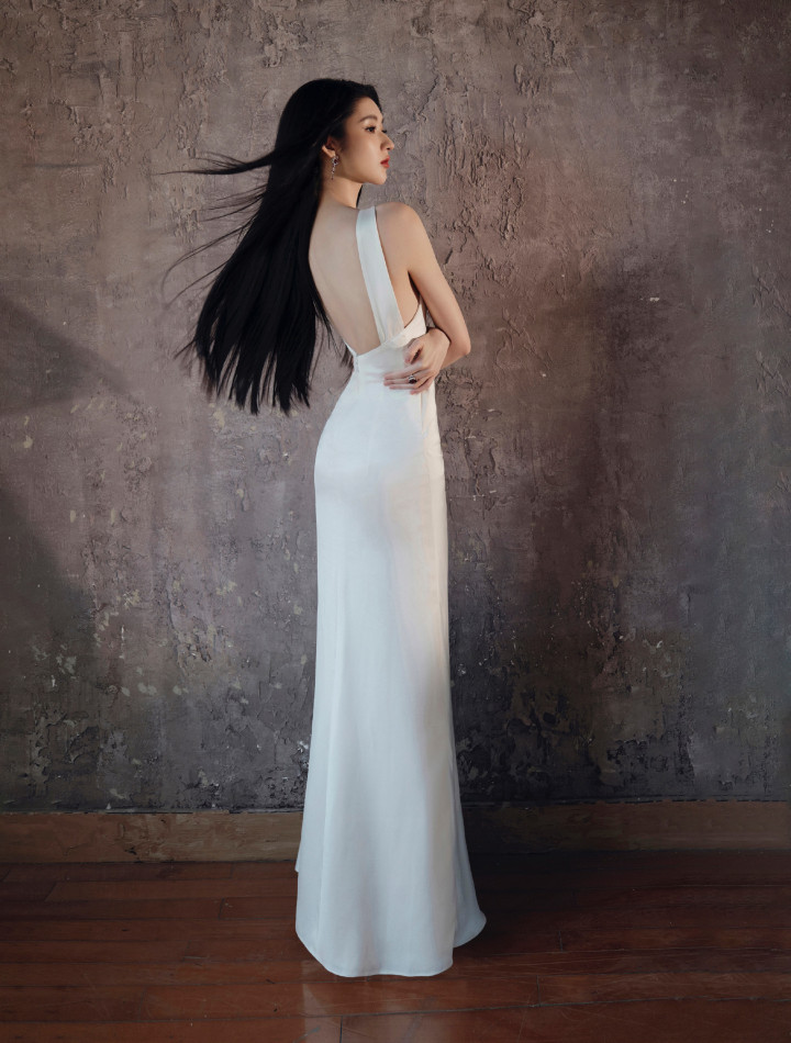 米兰体育官方网站 王玉雯纯白挂颈连衣裙, 简直女人中的女人