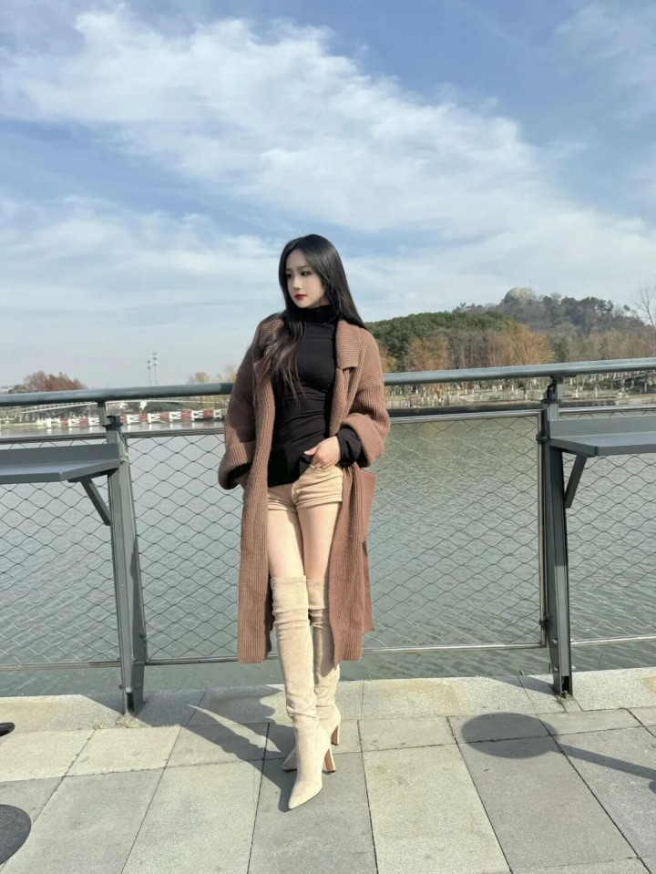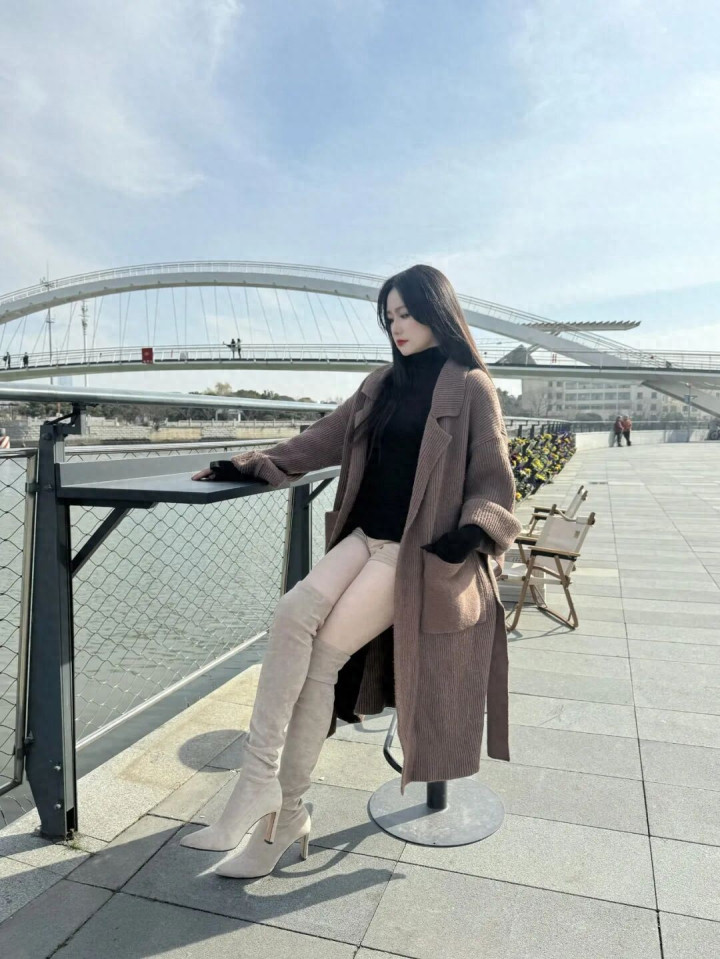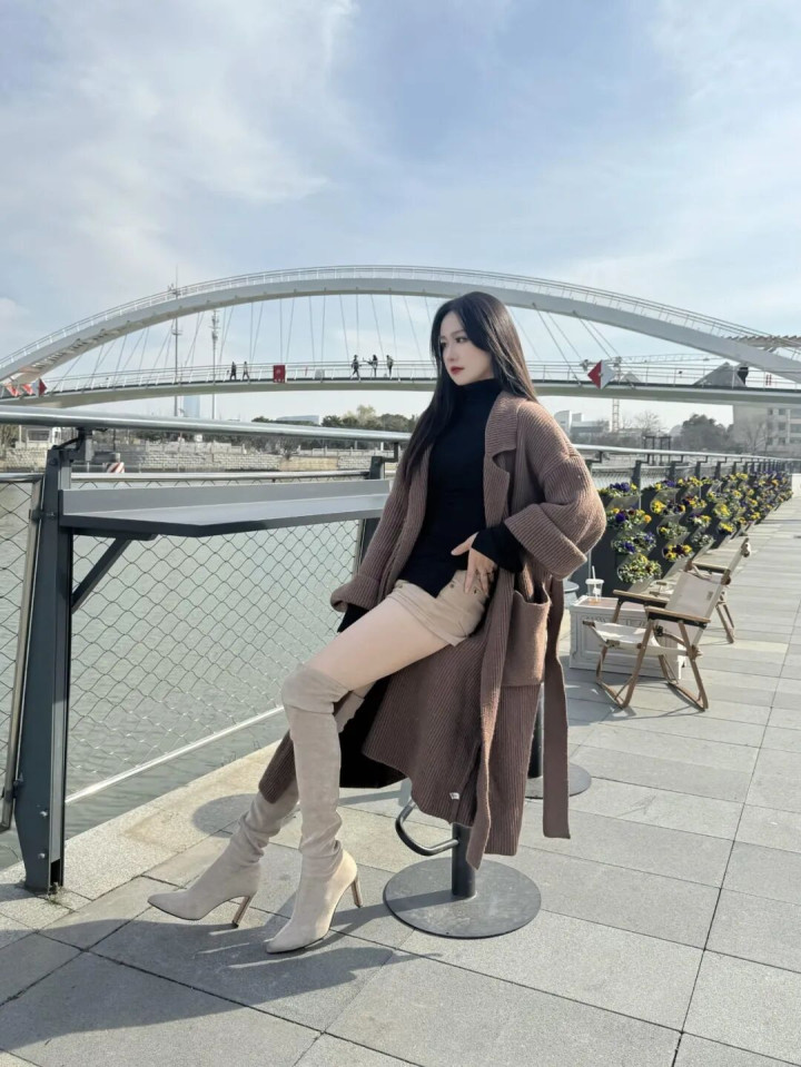 米兰体育官方网站 棕色大衣+过膝靴, 好有氛围感
