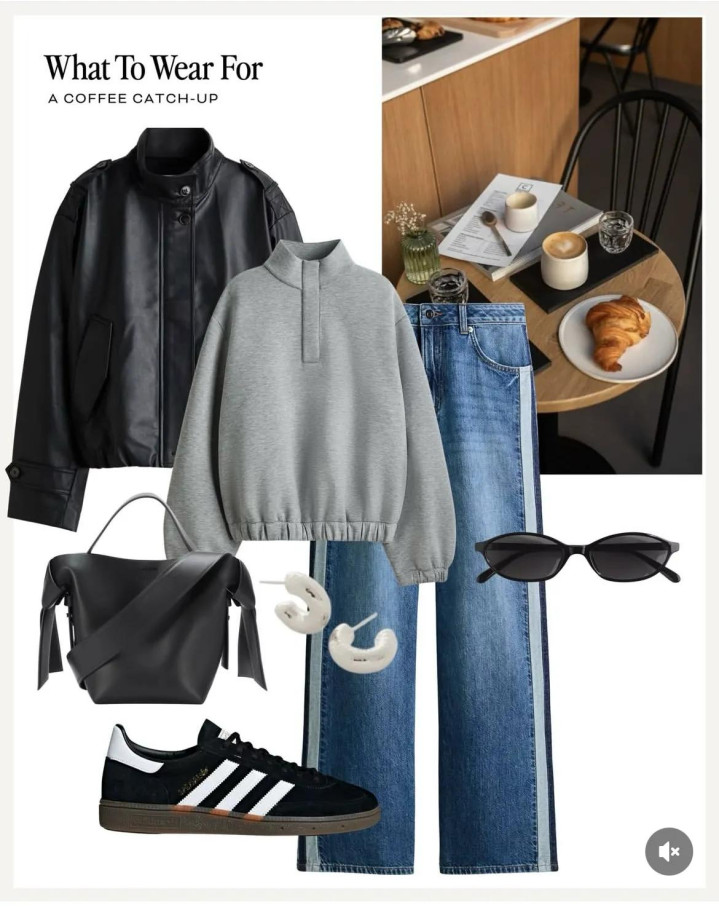 依然是皮衣做主打,棉绒内搭还有挡风的皮质面料,都是冬天理想的外套款式。简单搭加绒半立领卫衣,还有侧边拼接的阔腿牛仔裤,运动风能穿得率性又温暖。