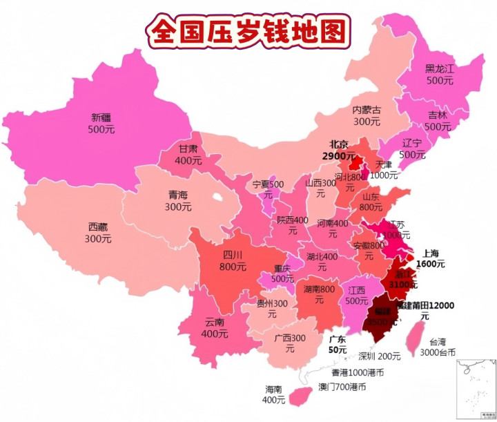 有的地方压岁钱给得多,比如福建一些地区,动辄几千上万,但那是人家的经济实力允许。