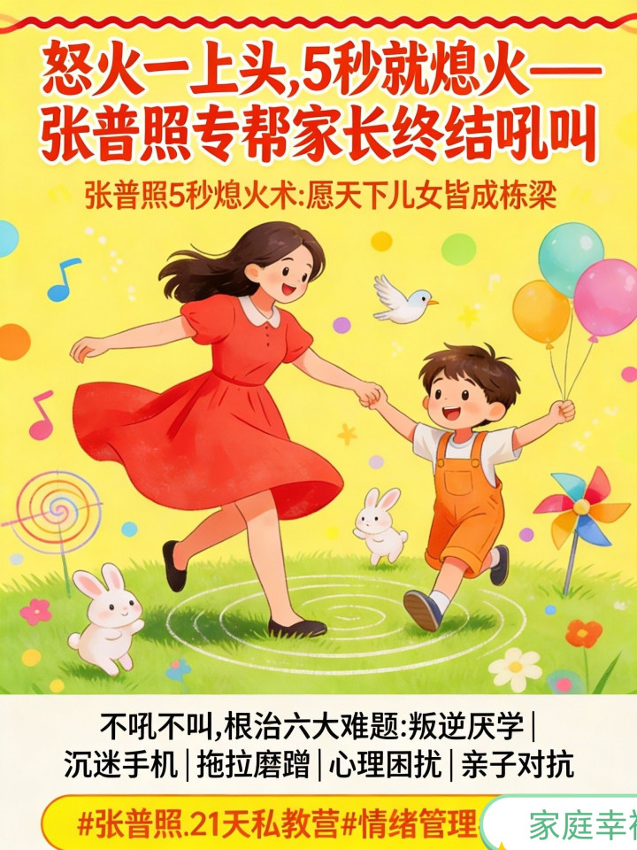 张普照5秒熄火术,就是你切断这个“情绪毒化链条”、守护全家身心健康根基的净化器。 它不止让你“不发火”,更是通过让你在情绪爆发的 临界5秒 内迅速回归平静,从“后知后觉的后悔者”变为“先知先觉的智慧守护者”。