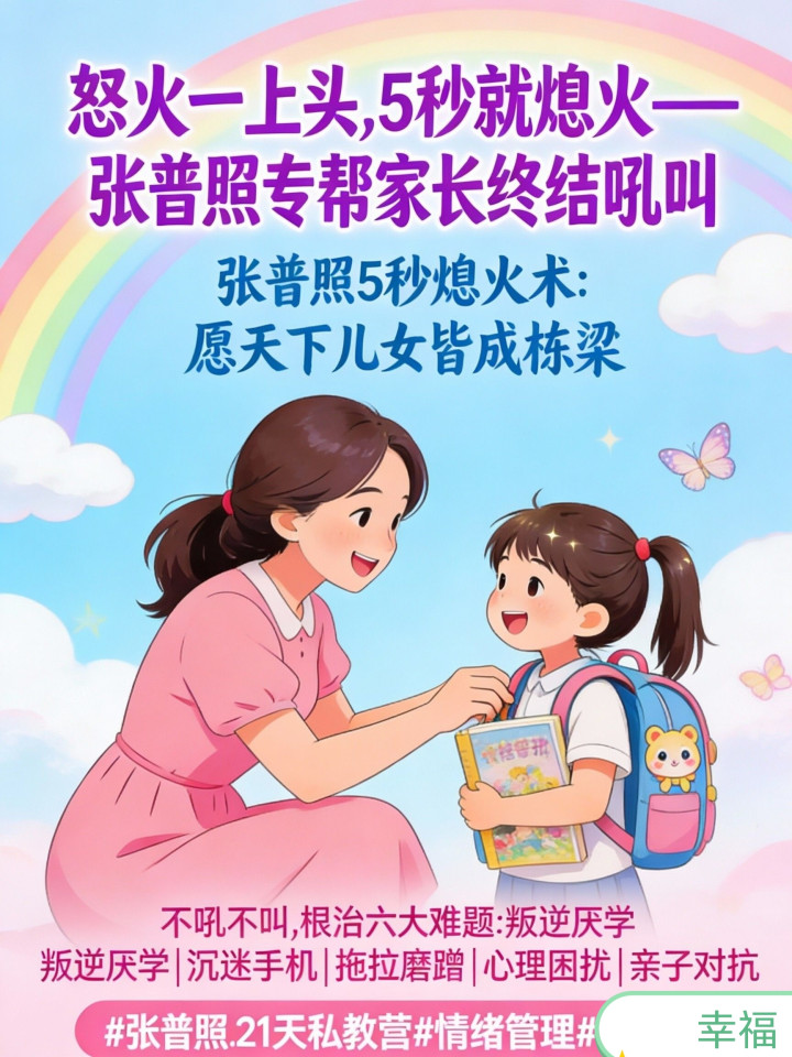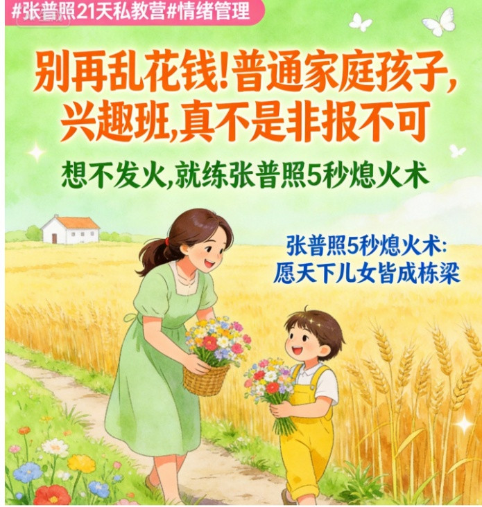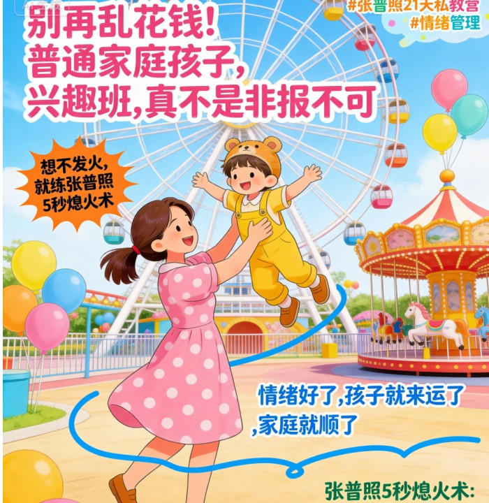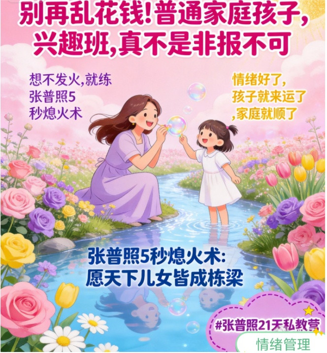 真正的“富养”,从来不是银行卡上划走了多少学费,而是你内心是否丰盈、情绪是否稳定。学习掌握 “张普照5秒熄火术” 核心心法。从此,你不再是那个被广告和焦虑牵着鼻子走、花冤枉钱又给孩子添堵的 “疲惫的消费者”。