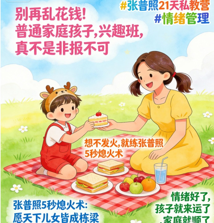 看着别人家的孩子钢琴考级、舞蹈比赛、编程拿奖,我们心里那叫一个慌。一边咬牙刷着信用卡给孩子报班,一边看着孩子不情不愿、上课走神的样子,心里又堵又疼:“我是不是在浪费钱?我是不是在逼孩子?更怕的是,孩子学不好、不想去时,自己那股压不住的烦躁和失望:“我为你花了这么多钱,你怎么就不珍惜?” 吼也吼过,哄也哄过,最后往往以孩子哭闹、自己内耗收场。那种“掏空钱包却换不来孩子一个笑脸,反而让家里鸡飞狗跳”的委屈和挫败,张普照老师太懂了。您那份想给孩子最好未来,却把自己逼到墙角、把亲子关系搞得紧绷绷的,那份又急又累的付出感。
