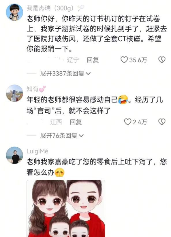 最近我刷到个短视频,说是个新老师想给学生点鼓励,期末试卷里夹了点零食,看着挺暖心的,结果家长群里一下就吵开了,有人直接说老师别自作多情,还有人干脆在评论区骂,说别用这种小动作糊弄孩子。