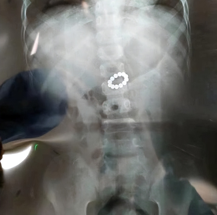因为孩子吞了几颗这些磁力珠,就会在孩子的肠道互相吸引,夹在肠壁组织导致缺血穿孔,甚至会危及生命。
