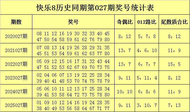 第19、20位号码分析:历史同期第027期分布在71-80之间,其中奖号尾数质合比为5:7、奇偶比为7:5、012路比为3:3:6,去年同期开出奖号:71和77,为全质尾、全奇、全2路组合,今年第027期预计第19、20位开出合尾+质尾组合,参考两码66+75。